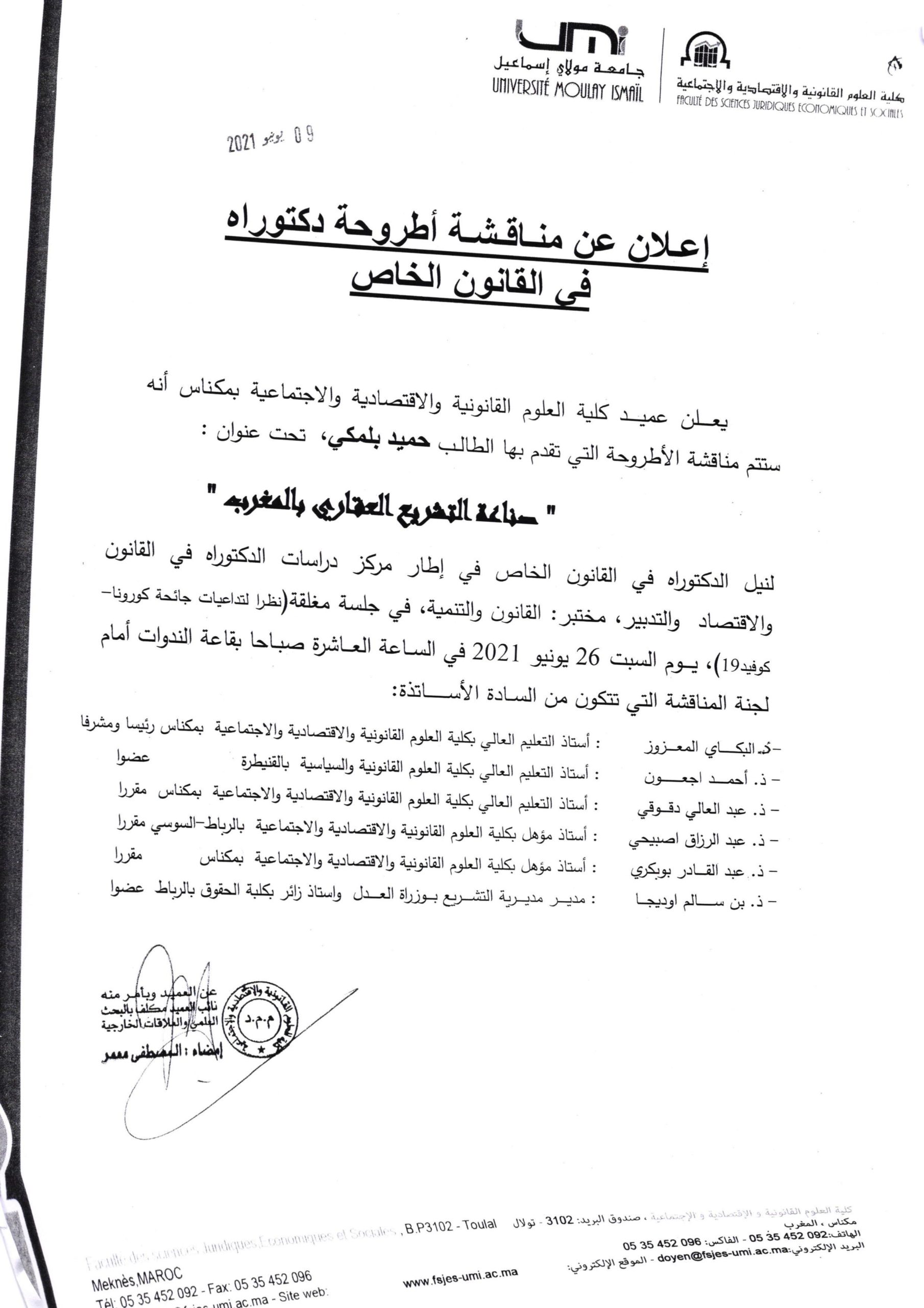 SOUTENANCE DE THÈSE DE DOCTORAT 26-06-2021