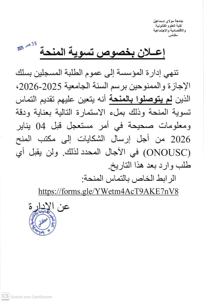 اعلان بخصوص تسوية المنحة