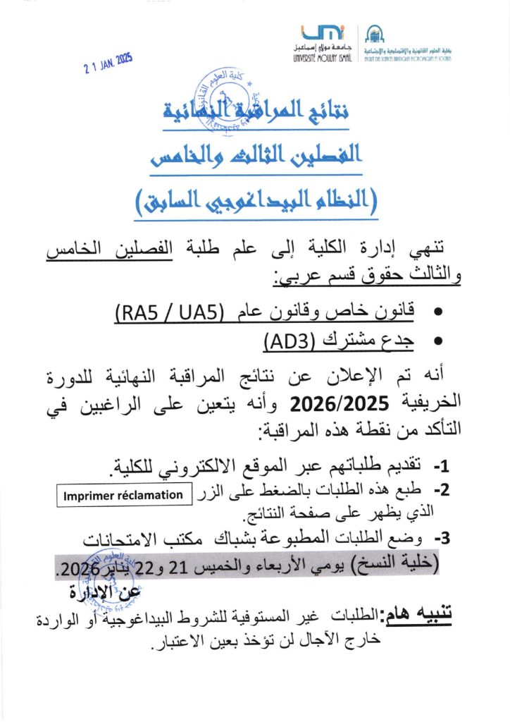 Résultats S3 & S5 – Session ordinaire (2025/2026)