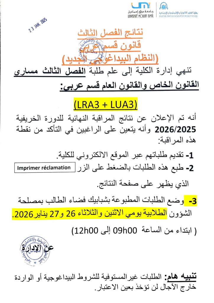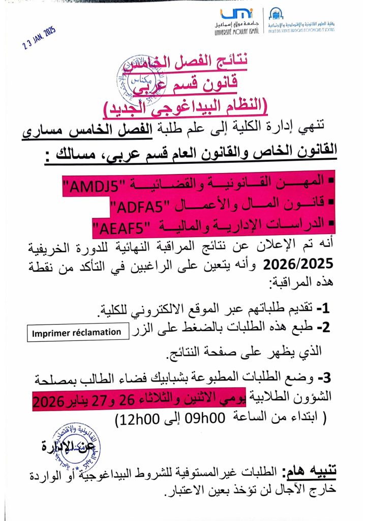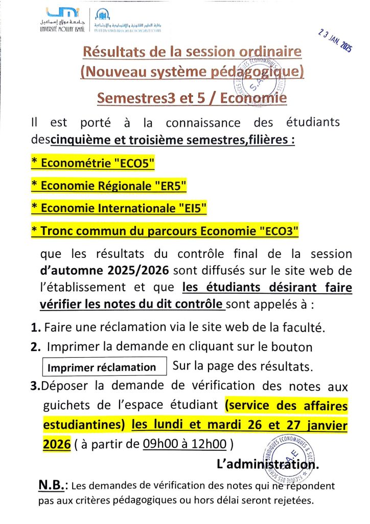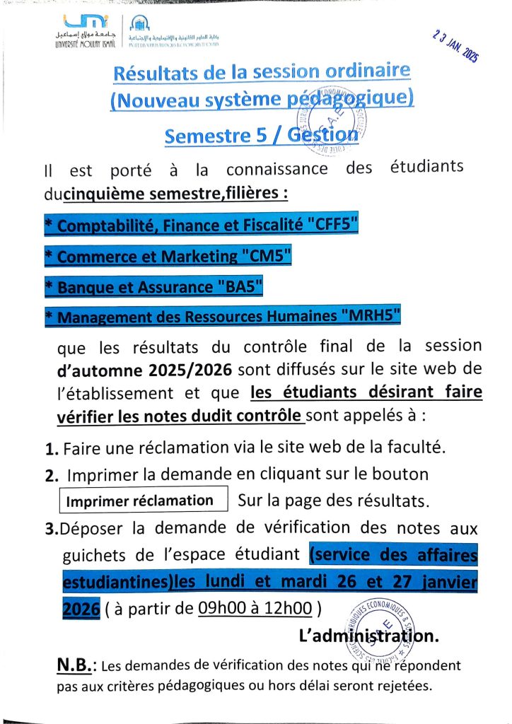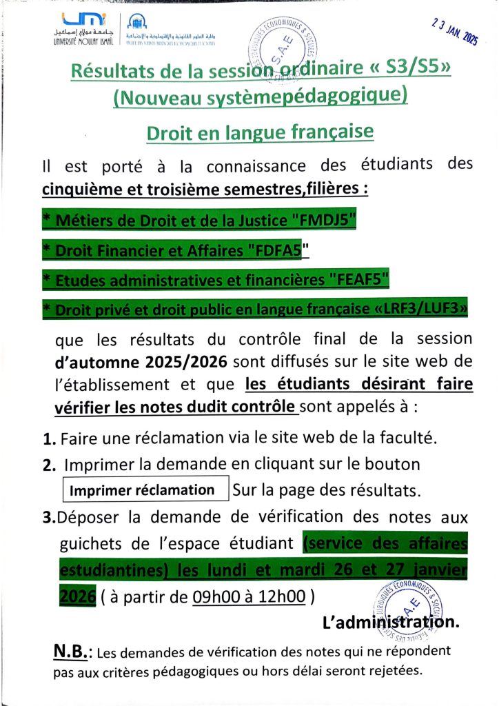 Résultats S3 & S5 – Session ordinaire (2025/2026)