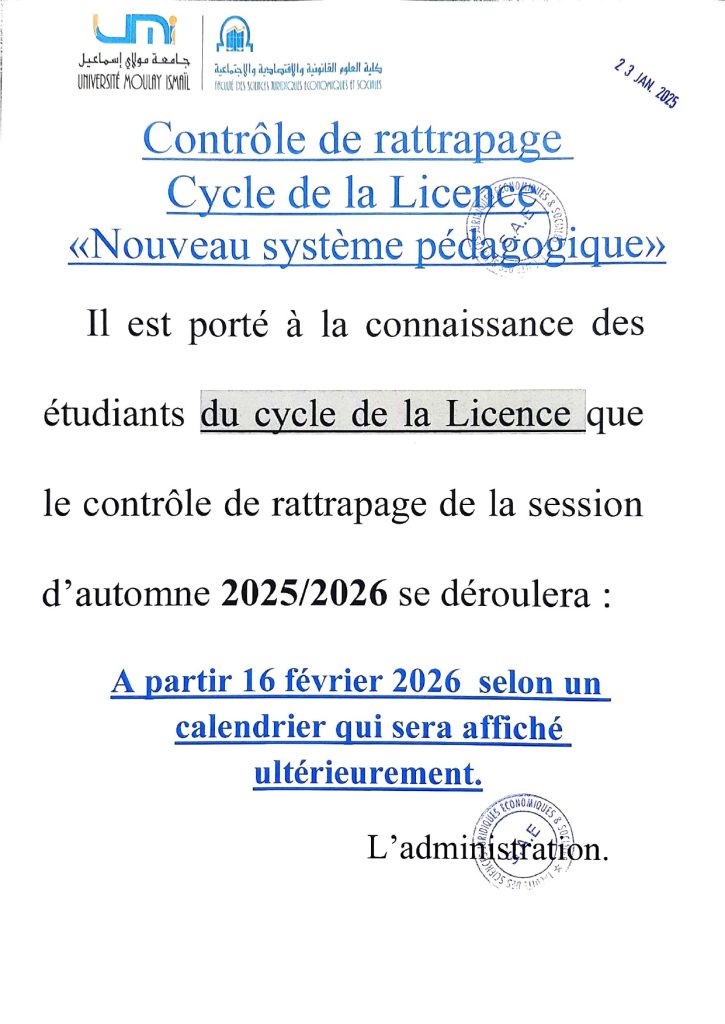 Avis – Participation au rattrapage (Licence et Licence fondamentale – 2025/2026)