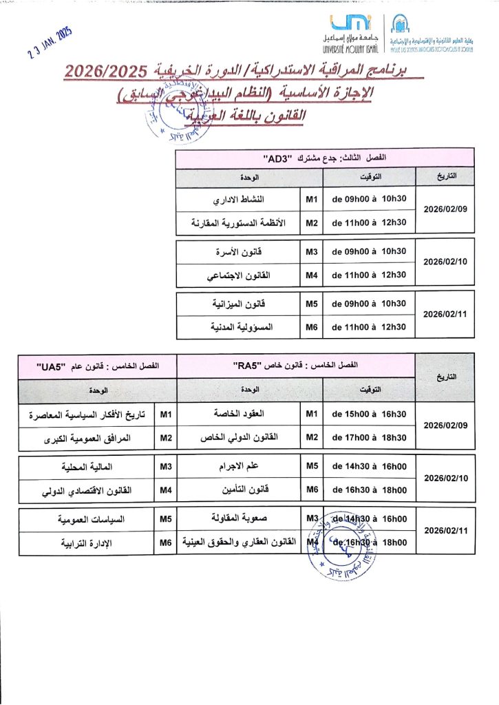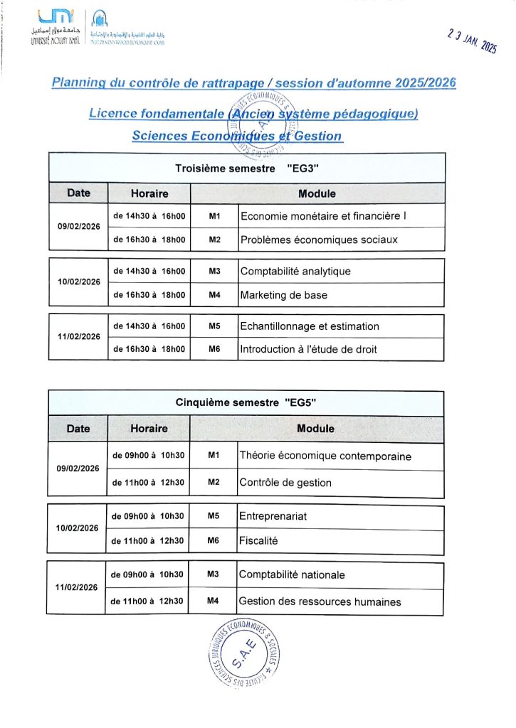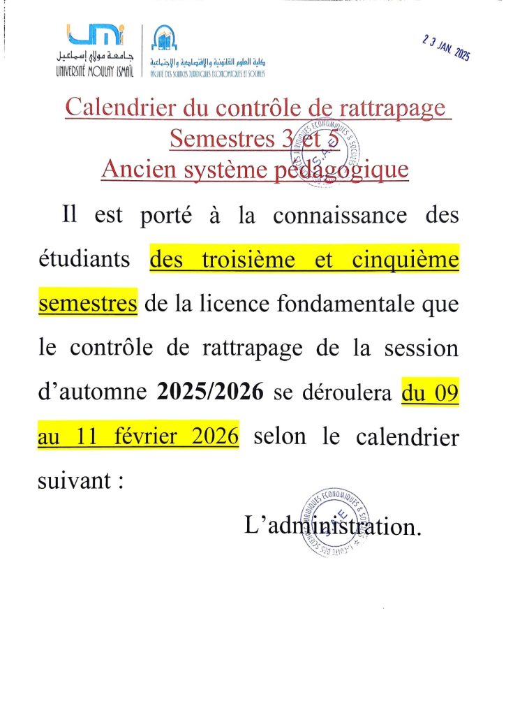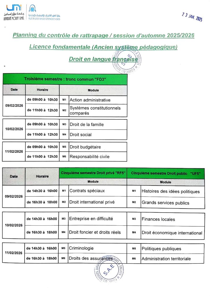 Planning du rattrapage S3 & S5 – Ancien système (2025/2026)