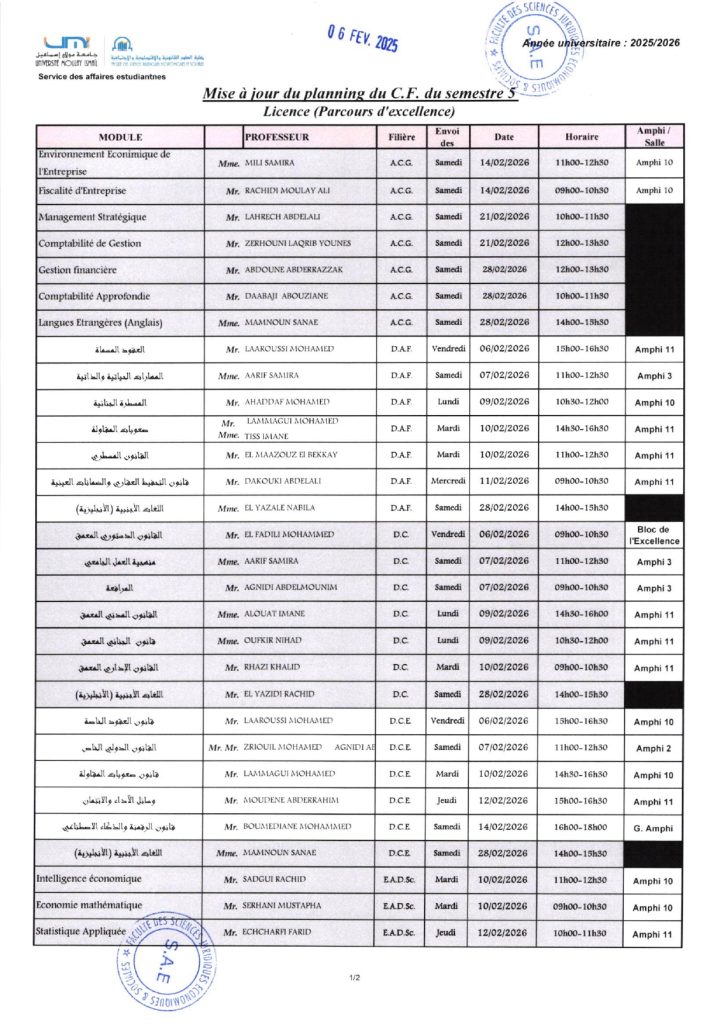 Planning du rattrapage S3 & S5 – Ancien système (2025/2026)